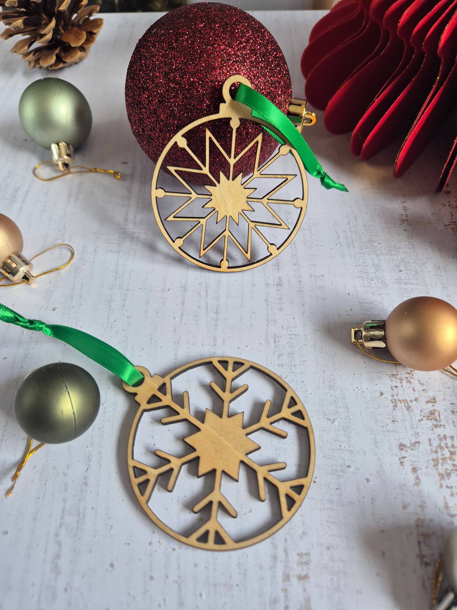 - Motif étoile de neige entièrement ajouré, découpé au laser