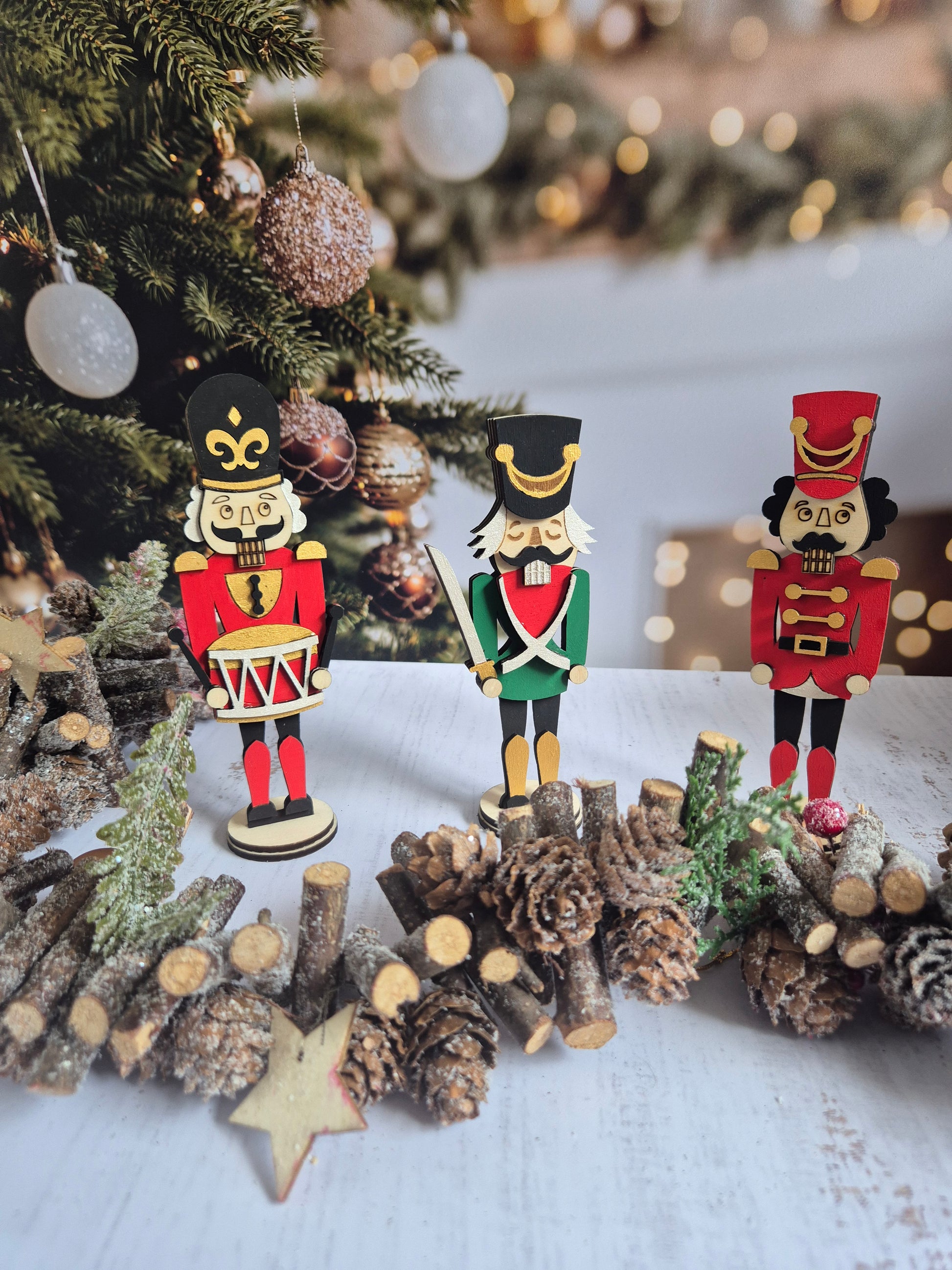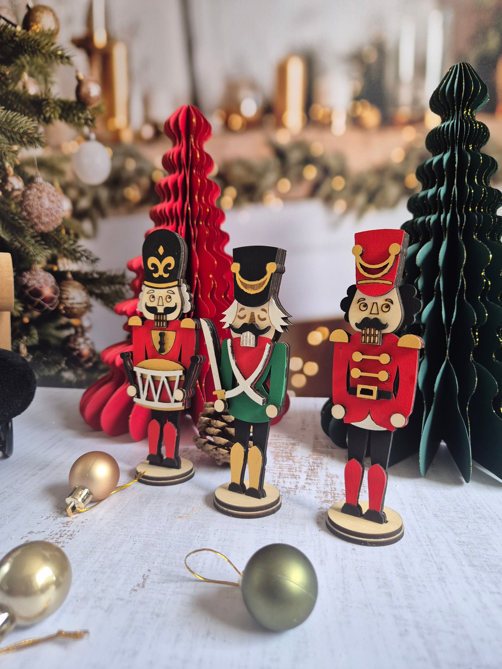 Ce lot de 3 casse-noisettes en bois, entièrement faits main, réunit les trois modèles emblématiques pour créer une ambiance festive et authentique dans votre intérieur.