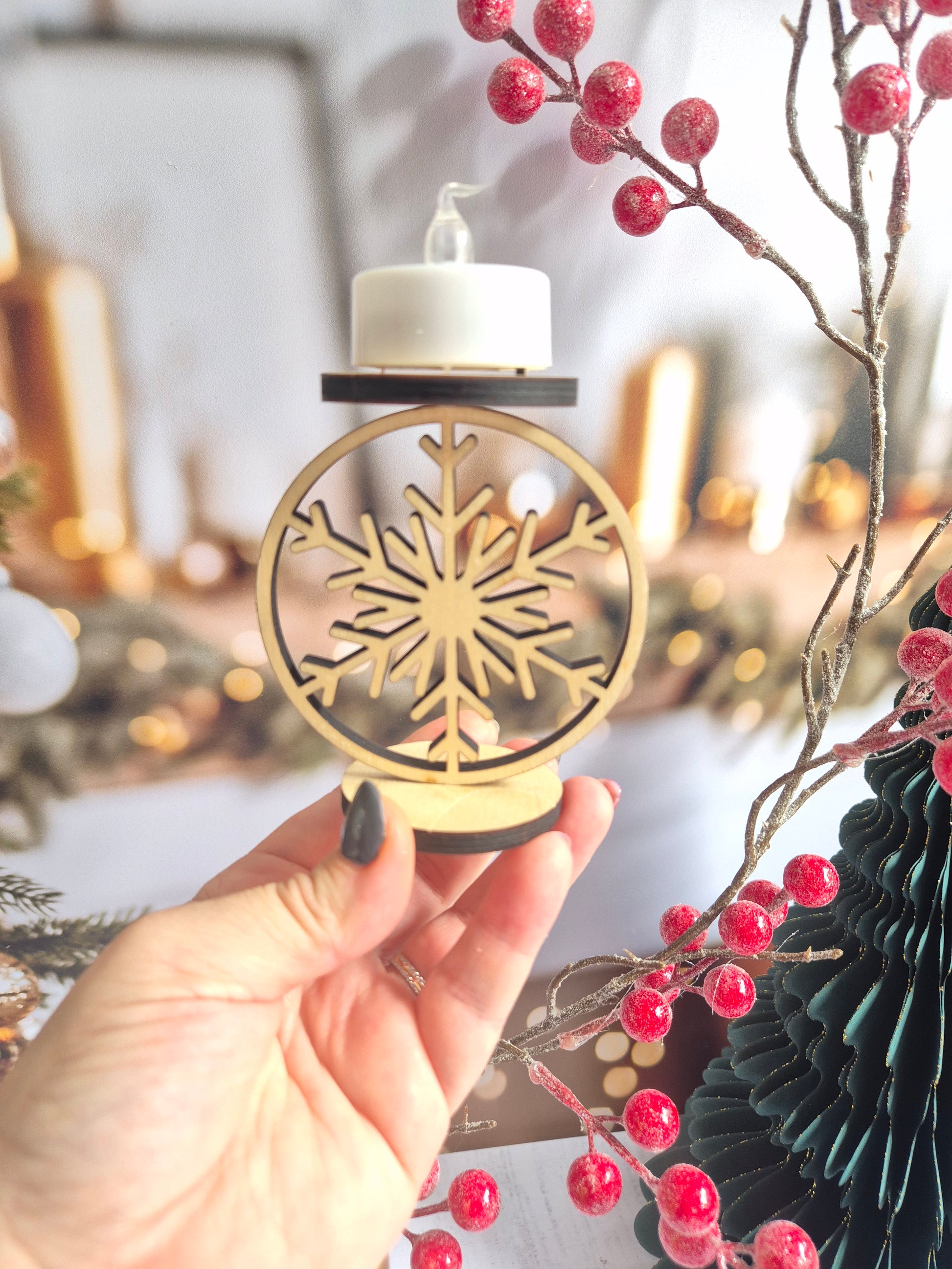 Apportez une touche chaleureuse et raffinée à votre décoration de Noël avec ce support bougeoir en bois naturel en forme de flocon. Son design délicat et graphique rappelle la magie de l’hiver et crée une ambiance cosy et festive dans votre intérieur.