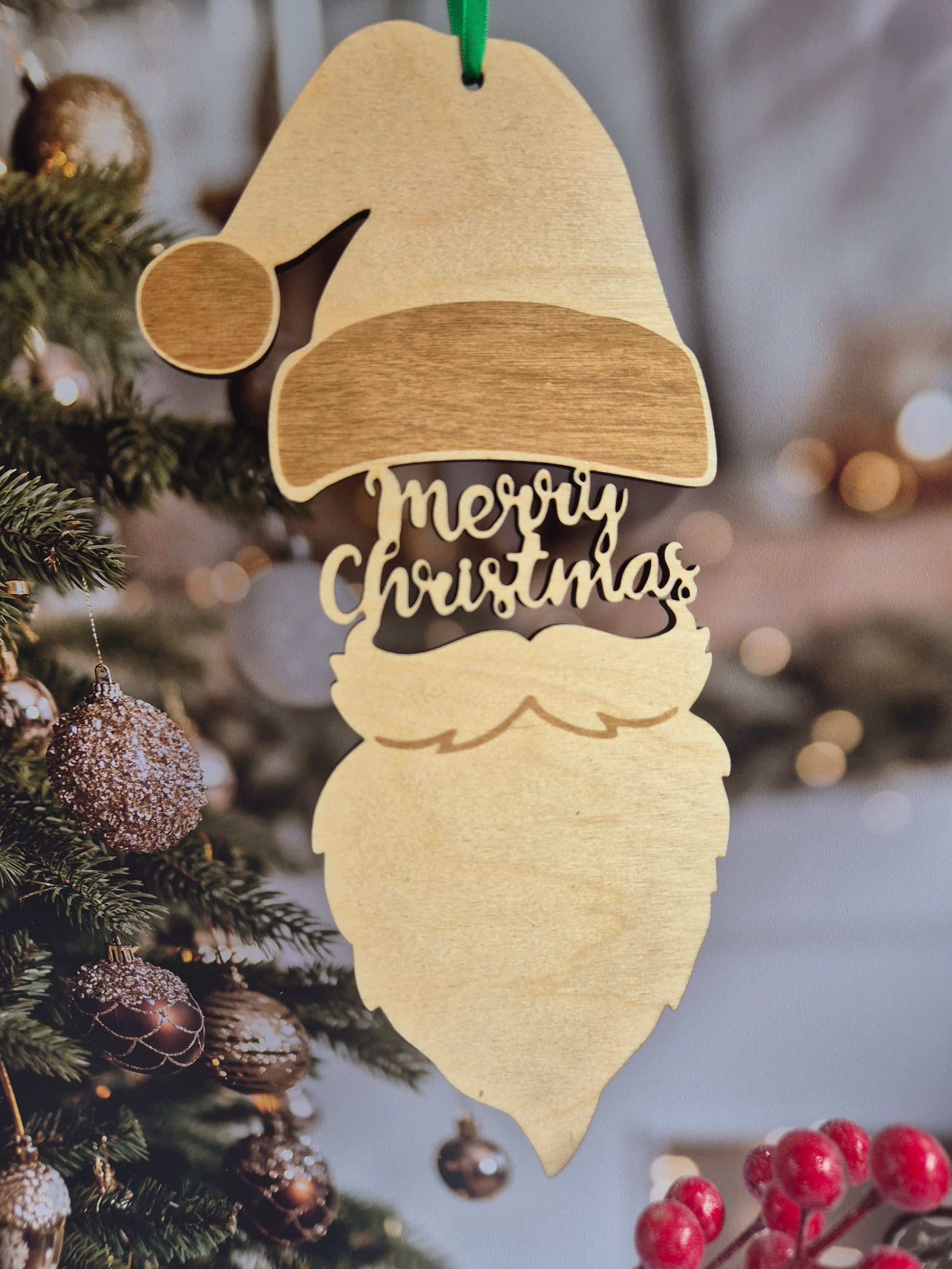 Apportez une touche d’authenticité et de douceur à votre sapin avec cette jolie suspension en bois “Barbe du Père Noël”.